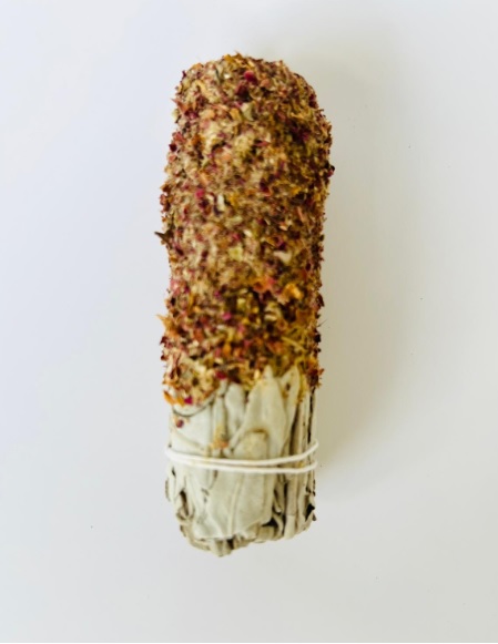 Bundle of Sage covered with rose petals, lavender and laurel.